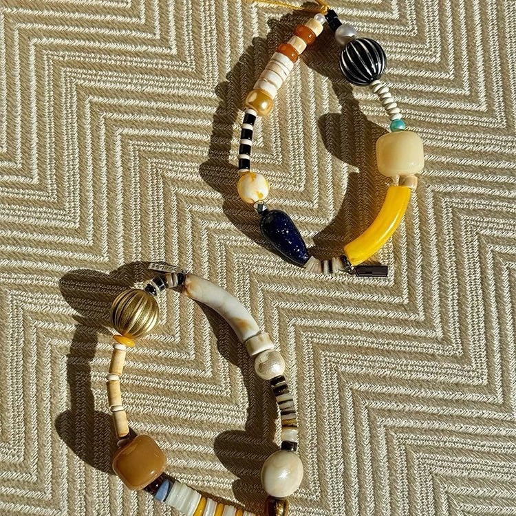 RORY《金銀のキャンディー》のビーズのチェーンは縄のカメラを掛けて携帯します。