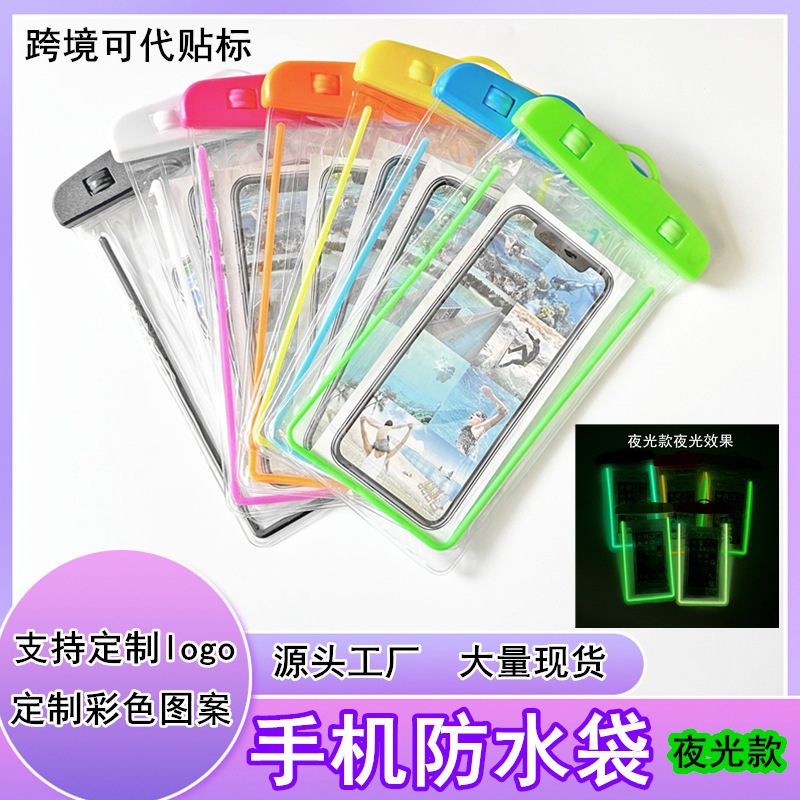携帯電話の防水袋はタッチパネルでロゴを印刷できる屋外水泳漂流透明夜光エアバッグ携帯電話の防水袋