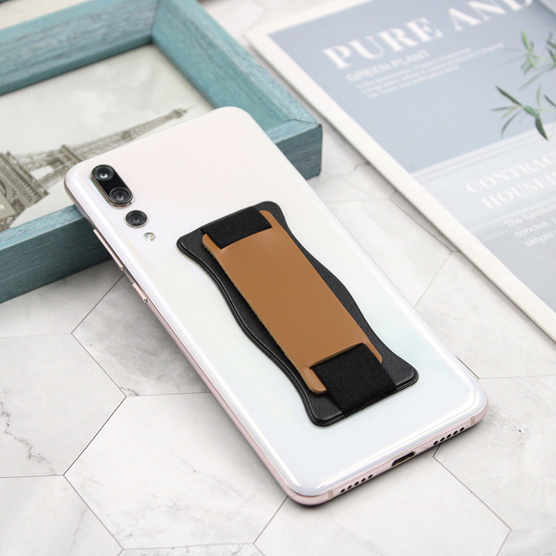 現品の短い携帯電話の指の弾力性の皮革の支柱の超薄型の携帯電話の指のリングは転びを防ぐことができて携帯してシンプルです。