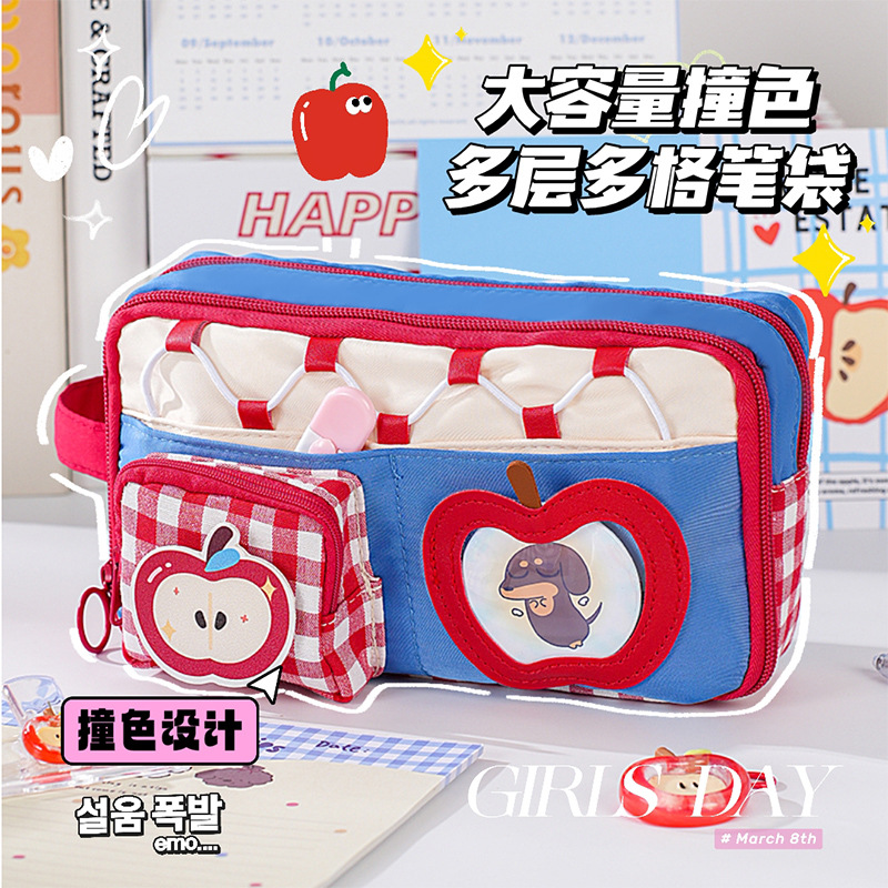 新しい対照的な色の Apple 大容量鉛筆バッグ、見栄えの良い多機能文具箱、学生ニッチガール文具収納