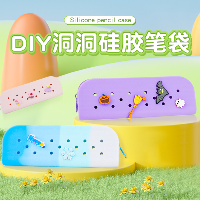新型クロスボーダー穴シリカゲル多色筆袋はdiy創意学生文房具筆袋が携帯して変形しにくいです。