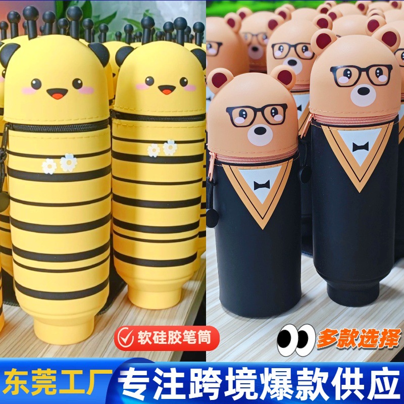 クロスボーダーの人気史迪仔筆筒漫画シリカゲル筆袋縦型伸縮史迪奇文房具子供鉛筆ケース