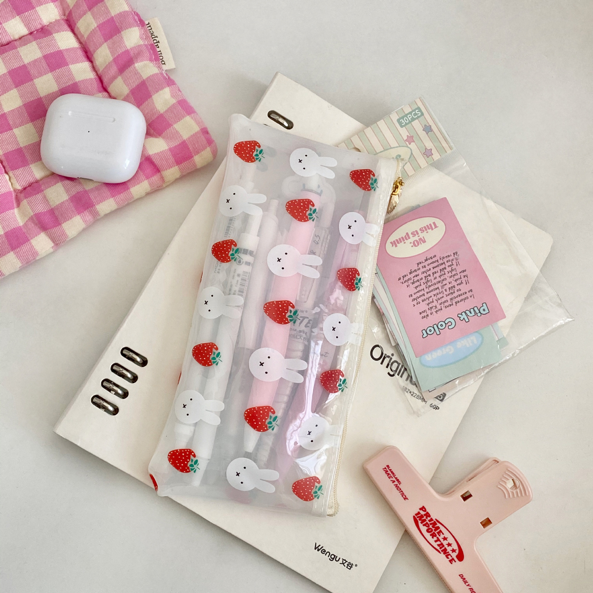 かわいいイチゴウサギ文具袋漫画プリントコインカードバッグ収納袋 pvc ゼリー透明文具袋