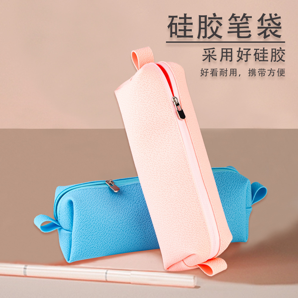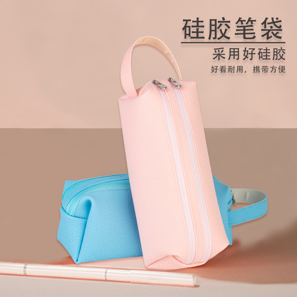 シリカゲルの四角形の筆の袋の男女通用の事務学習の文房具の収納袋のハンドバッグの高い顔の価値の筆の袋の大容量