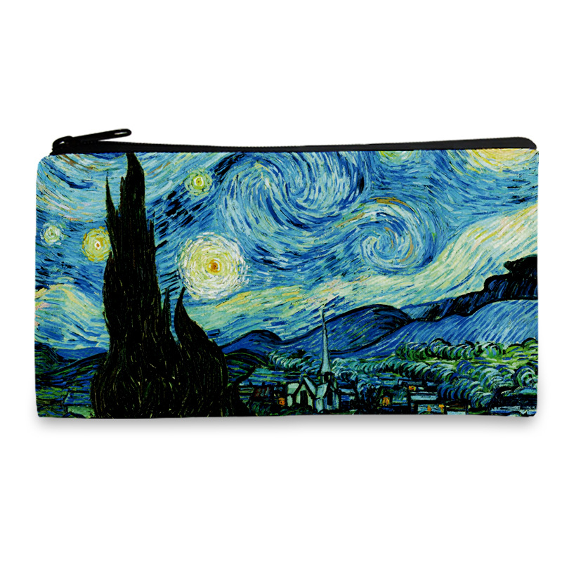 卸売りクロスボーダーのキャンバスの筆袋の平包ゴッホの油絵の星空の携帯電話の収納袋の化粧袋の小銭袋