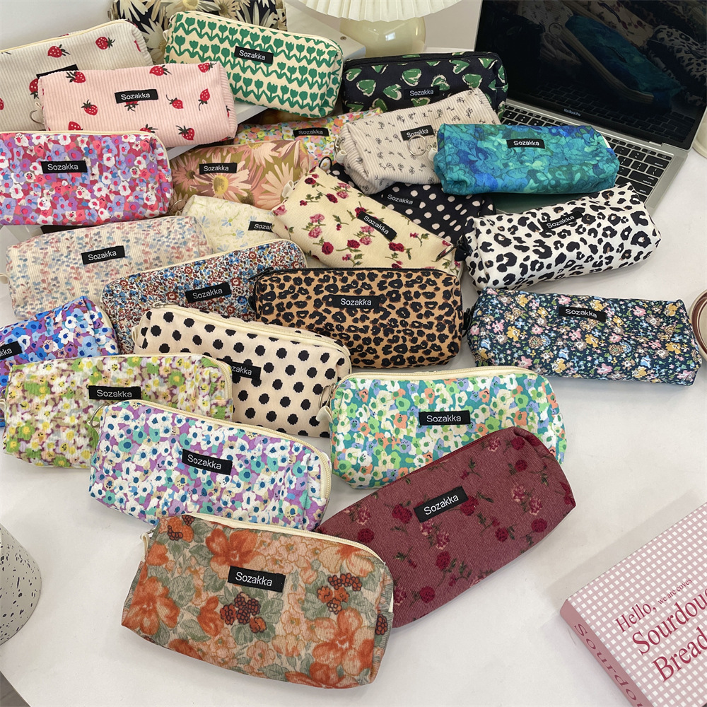 411273新型レトロ砕花大容量学生授業筆袋小銭収納袋化粧品収納女