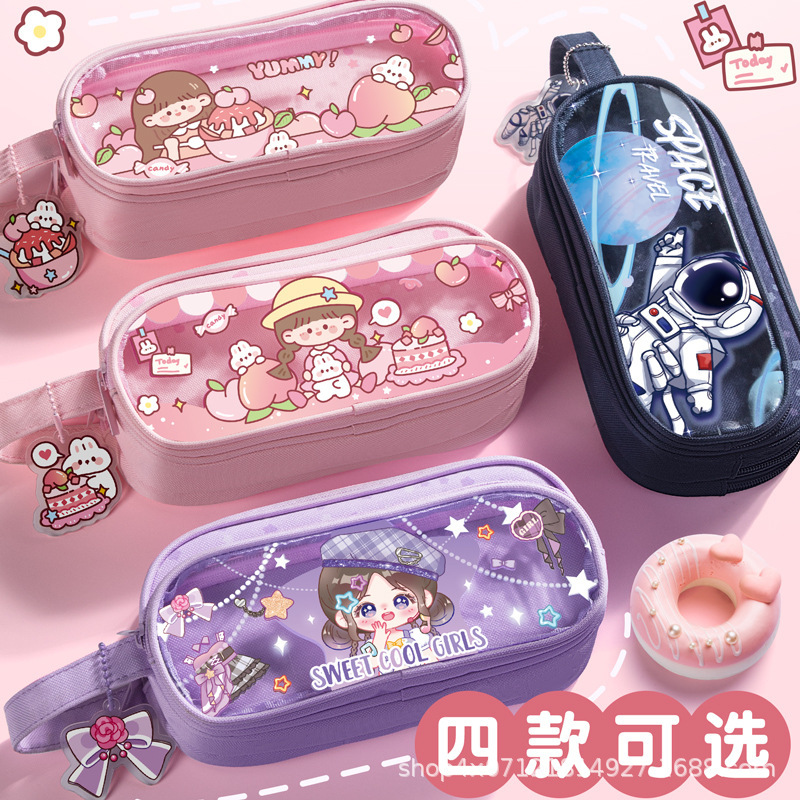 新しいトレンドイン漫画透明無地文具高校生高価値大容量鉛筆バッグ化粧品バッグ