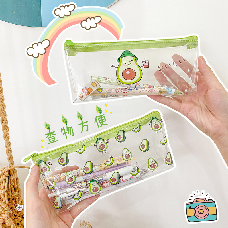 韓系ins風透明シンプル高颜値学生収納袋アニメ牛油果シリーズ大容量筆袋