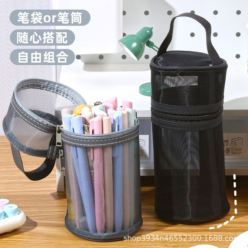 康百網紗透明筆筒式筆袋縦式シンプル透明文房具袋中高生試験専用袋