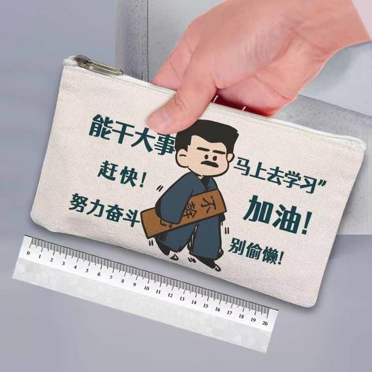 漫画風韓国版キャンバス大容量ペンケース、クリエイティブで可愛い文房具ボックス、学生用鉛筆収納バッグ、面白くて可愛い