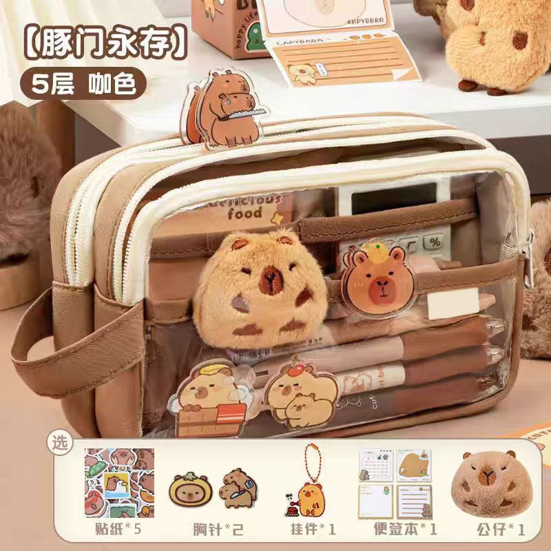 5層カピバラペンケース!見栄えの良い大容量多層文具バッグセット、男女学生向け
