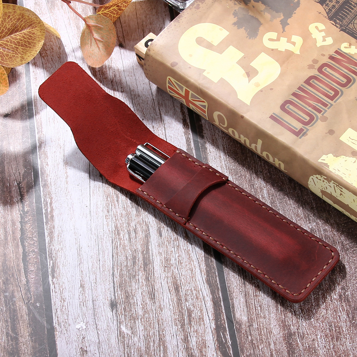 手作りの本革の筆袋を卸売りします。レトロな革のペンの収納ケースです。