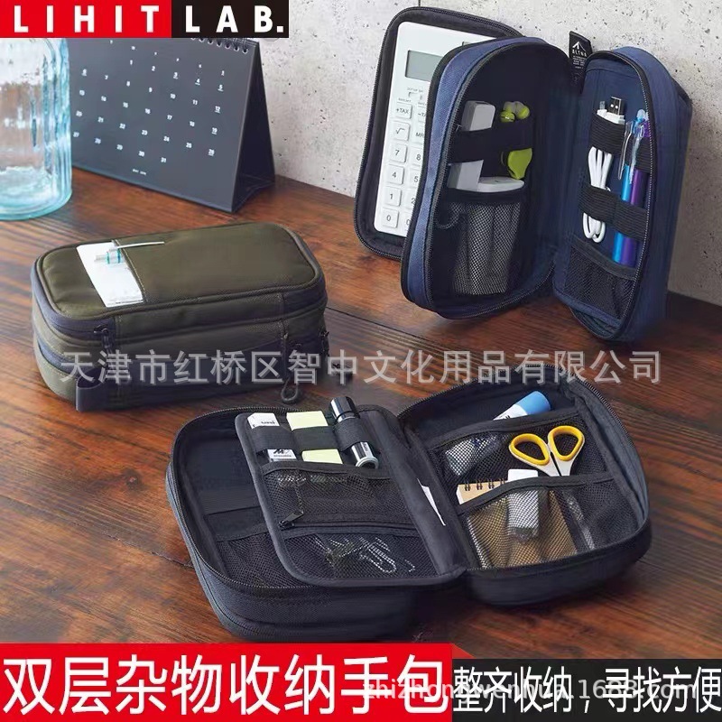 日本lihit lab. 喜利アルトナ二層雑物収納袋イヤホン便箋本手提げペンケース