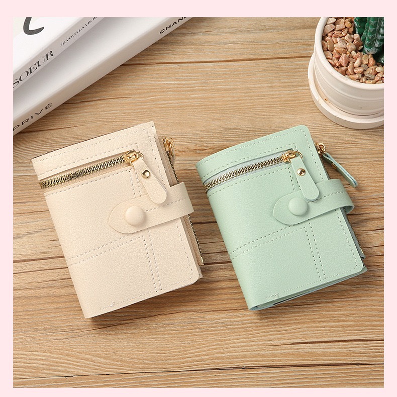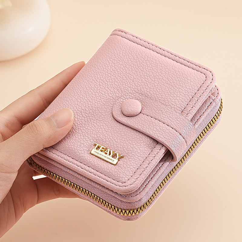 ボタンレディース财布ショートタイプジッパー付きマルチカードホルダー三つ折りレディース革クリップwallet womenレディース