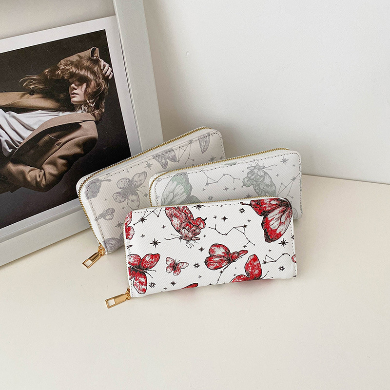 国境を越えた新型2024女性バッグ韓国版蝶プリントの中長財布ファッションシンプルなシングルジッパーのハンドバッグ