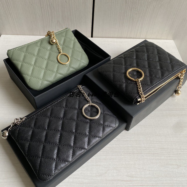 菱格牛革ファスナー小銭入れキャビアボール柄レディース小香小銭入れカバン本革キーケース小銭入れ