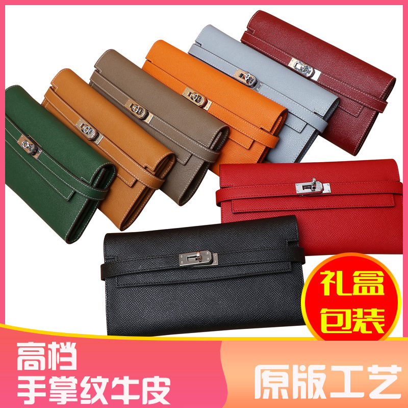 欧米のファッションの経典の手のひらの紋様の牛革のエプソムのハンドバッグの女性の本革の長い金型のプラチナの財布の財布