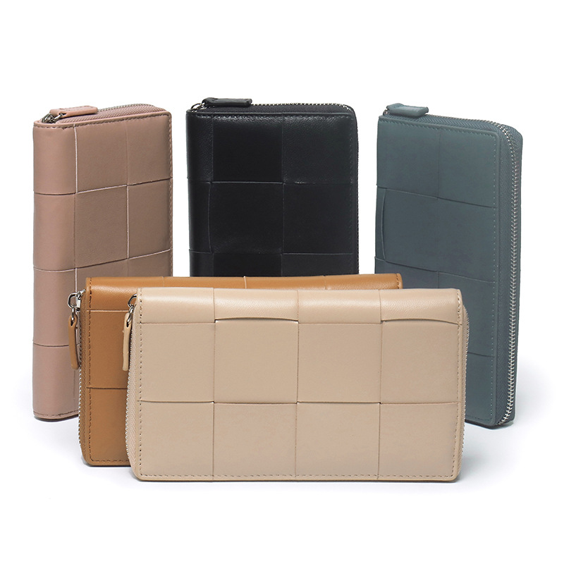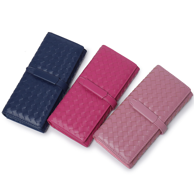羊皮編みグラデーション長財布女性本革柔らかいバンドクリップ潮手手持ち女性財布