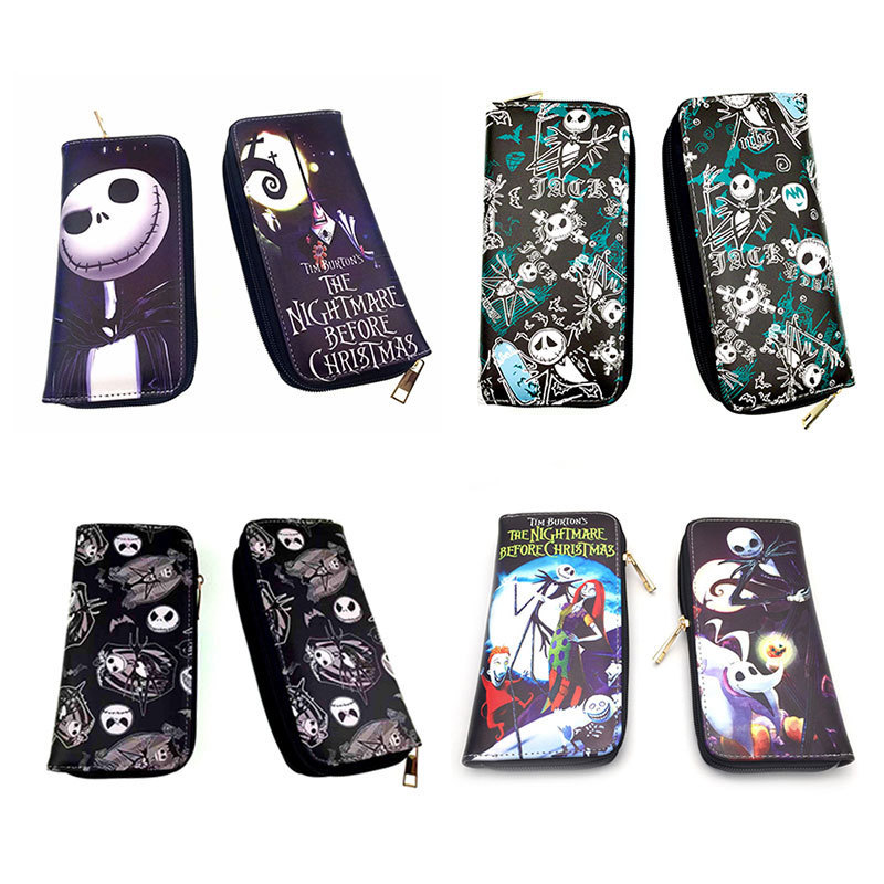 スカルクリスマス惊魂夜ロングジッパーpu皮財布クリスマス怪傑多卡位小銭入れ