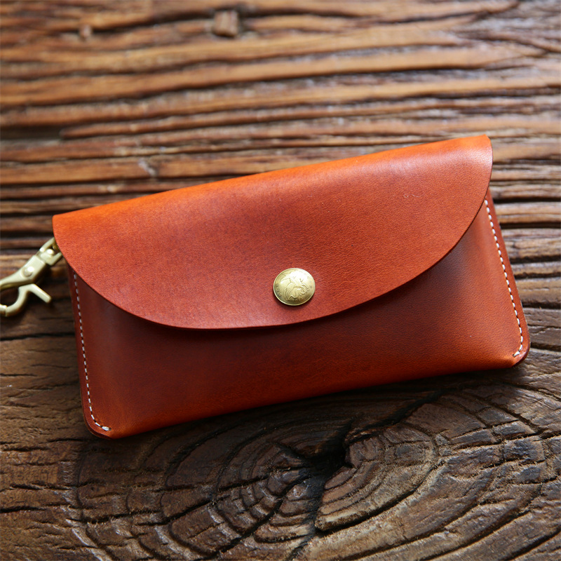 レトロな手作りの本革は男性用の長い財布を持っています。