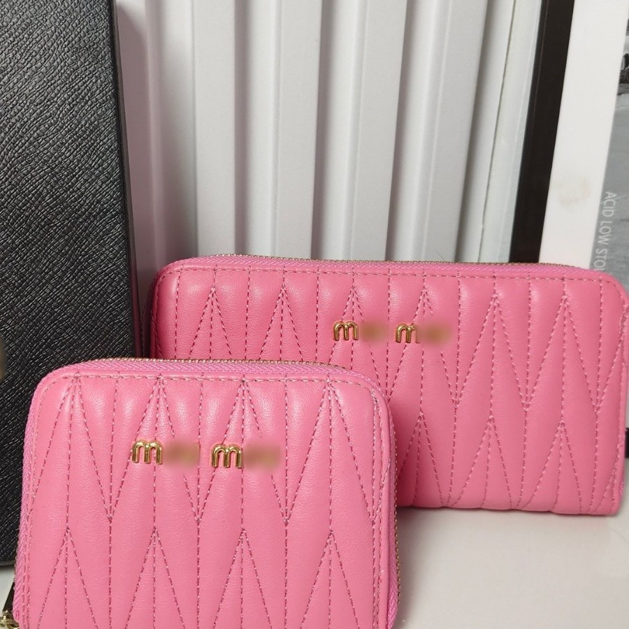 国境を越えた卸売り2024欧米の新型シンプルでファッション的な刺繍線菱格大容量カードバッグジッパーカード財布