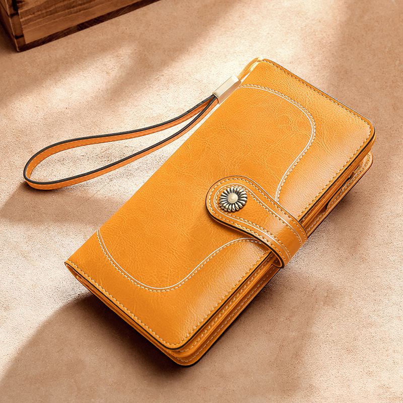 2025 新しいレディース長財布卸売クロスボーダーヨーロッパとアメリカのレトロオイルワックスレザー女性財布女性財布