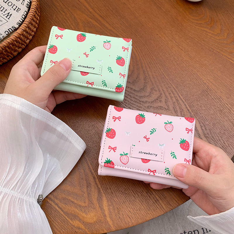 甘い財布の女性のタイプの韓国系の3つの折りたたみの財布の小さい携帯用のファッションの多機能のカードは女性の両用の財布を包みます。