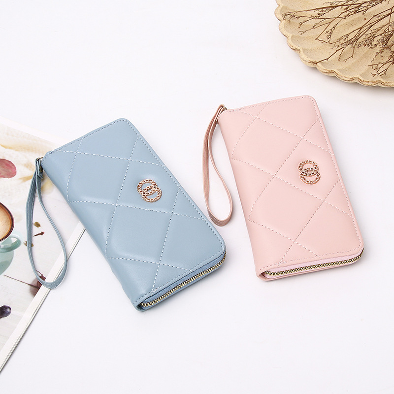 新型大容量菱格小香風純色長財布多機能ファッション百合手バッグ卸売り