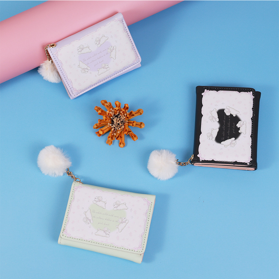 韓系少女夢三つ折り財布ウサギウサギカードバッグ証明書バッグかわいい短い消磁防止マルチカード財布
