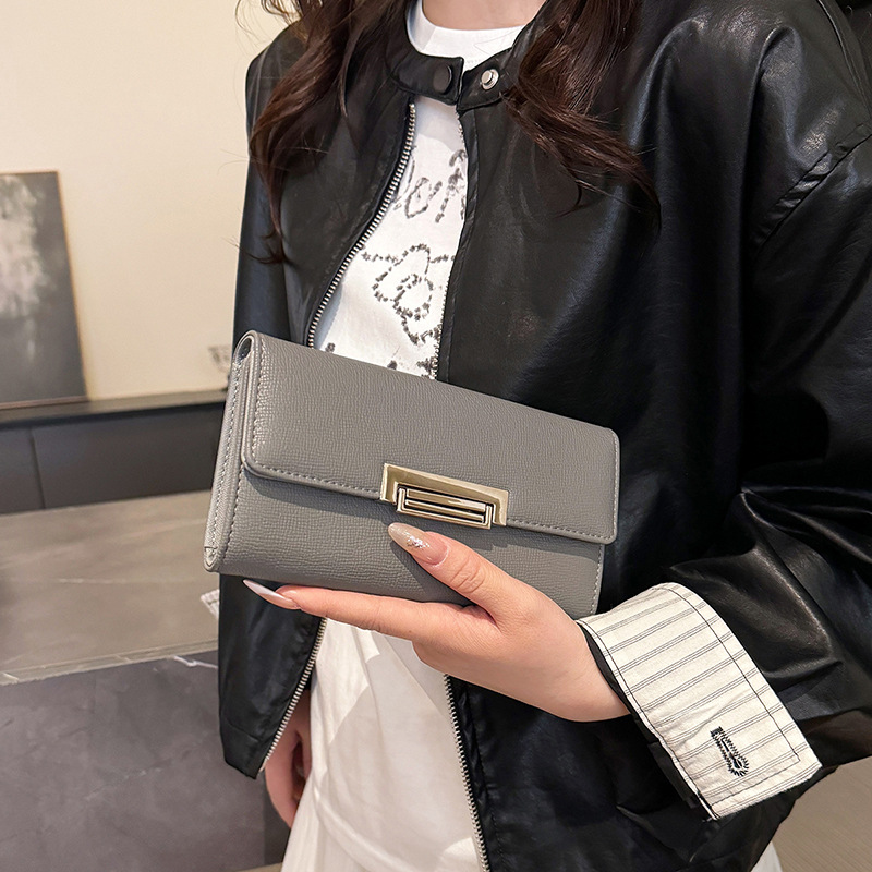 ロングタイプの短い純色財布クロスボーダー女性バッグ2024新型欧米ファッション流行アルファベット個性手持ち財布