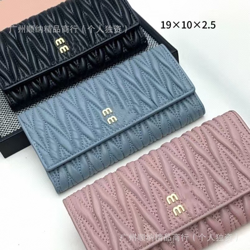 新しいシープスキンプリーツミュウレターフォールドウォレットカードホルダーファッショナブルで甘い財布大容量マルチカードスロットハンドバッグ