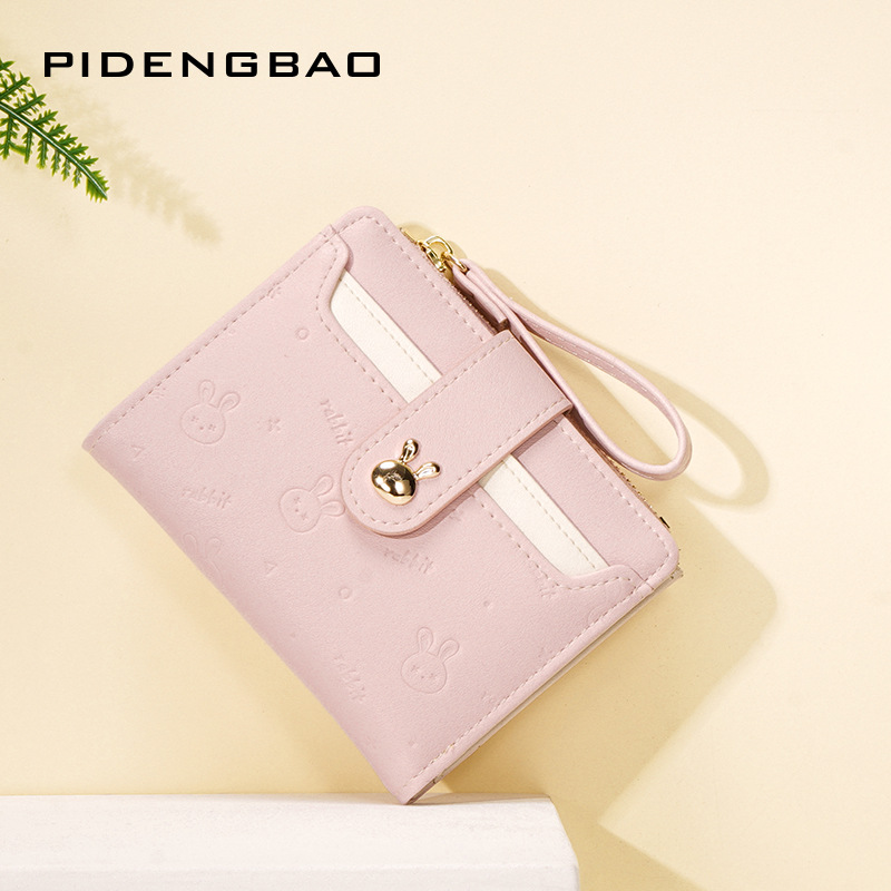 2025新型韓国版かわいい圧印ウサギ女子財布ins薄いカード女性ファスナー小銭入れ
