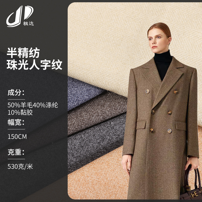 新しい半梳毛真珠光沢のあるヘリンボーンウール混紡生地パンツスーツダウンジャケットウールコート生地
