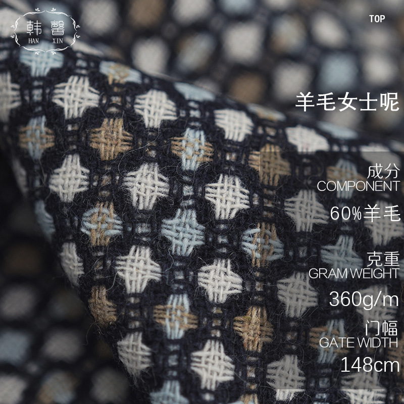 現物の小さいジャカードのウールの粗紡の生地の360g春秋の男女のコートの服の毛の織物の布