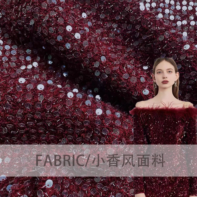 粗織りツイードワインレッドビーズスパンコール生地婦人服ワンピースコートバッグ靴素材布地欧米風