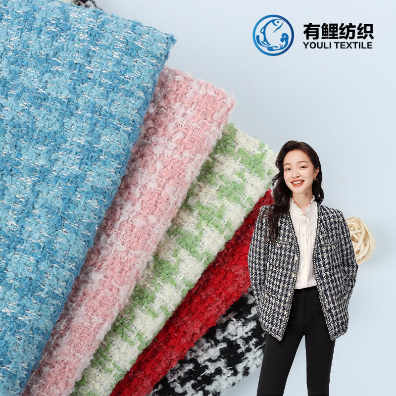 小香風亮糸粗紡織花の生地はファッション婦人服コートのバッグ靴材などの生地を編む