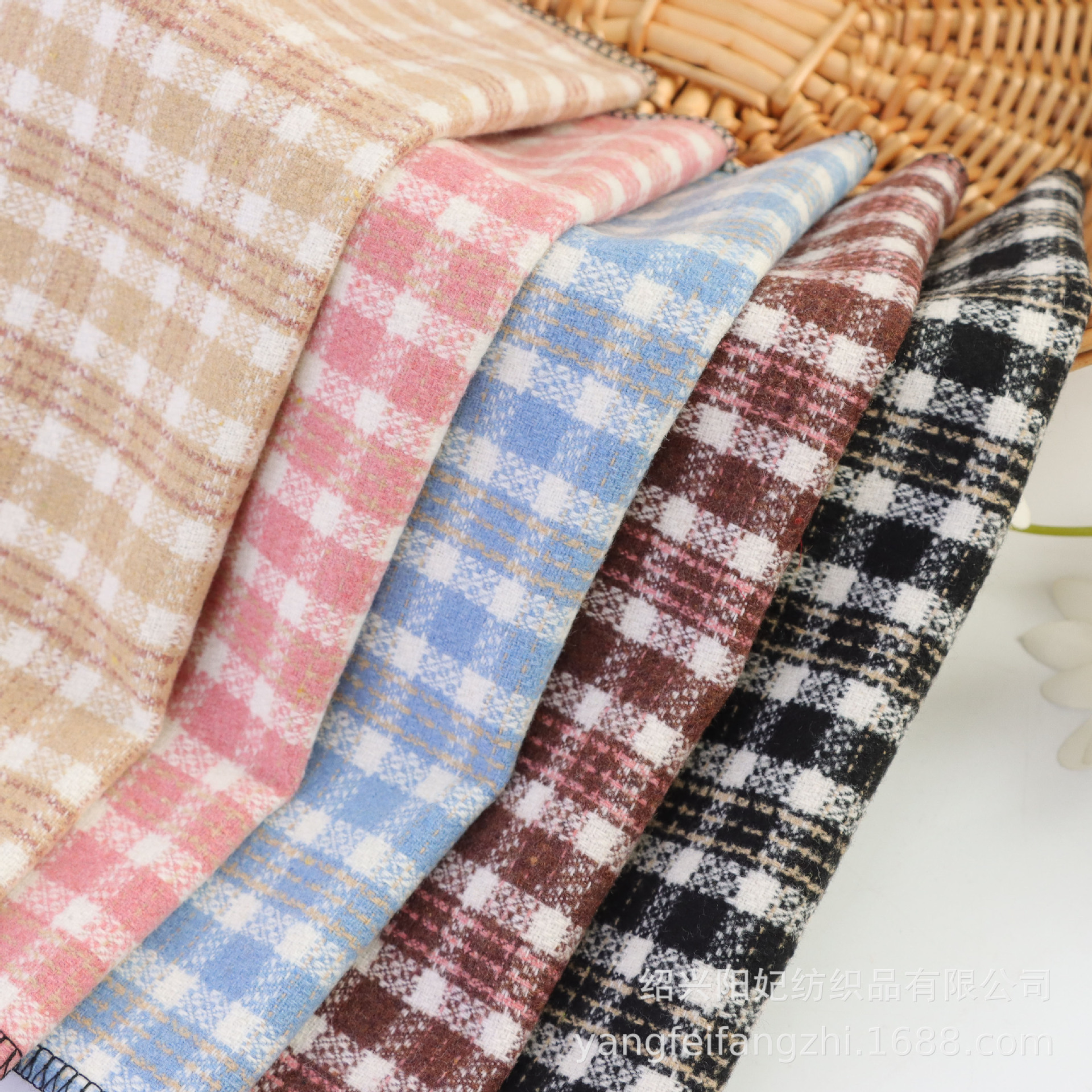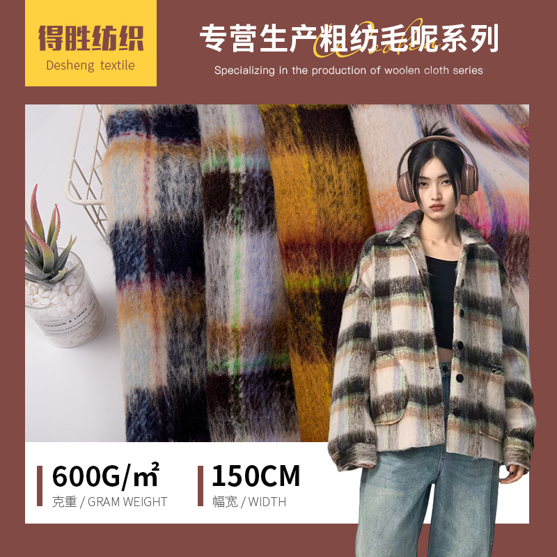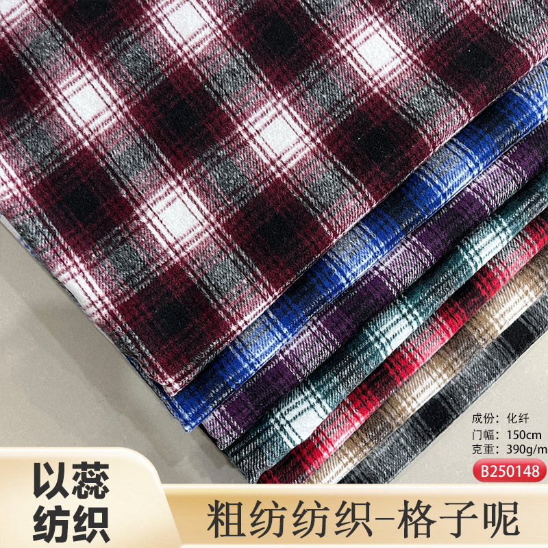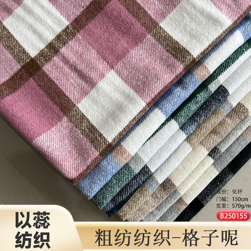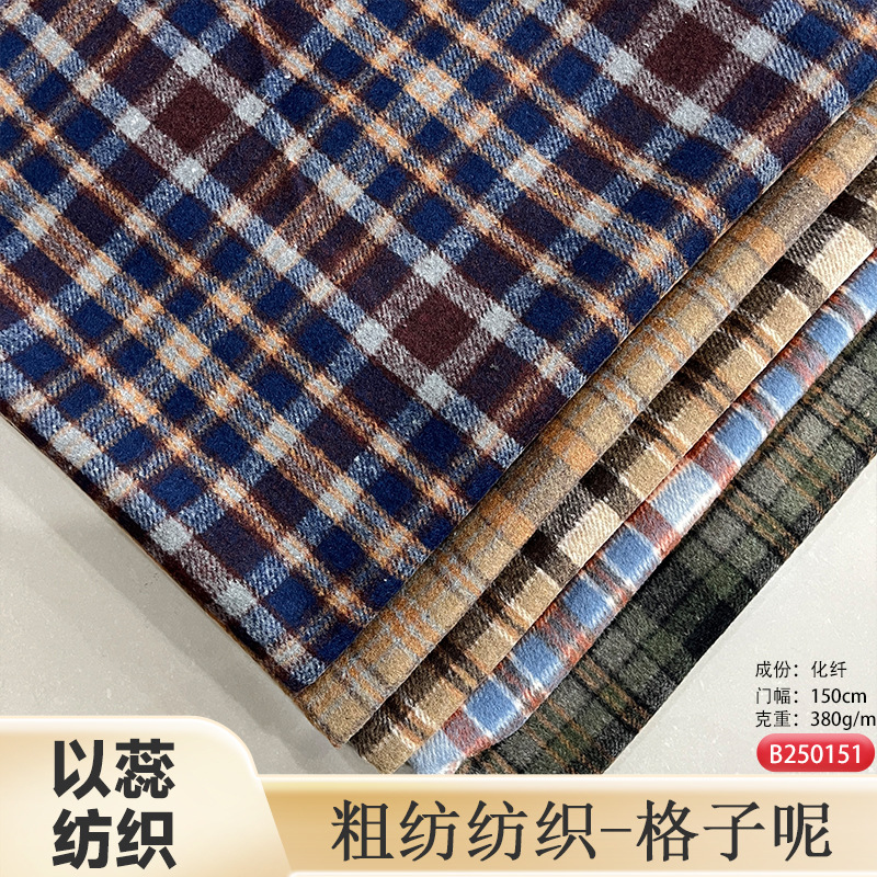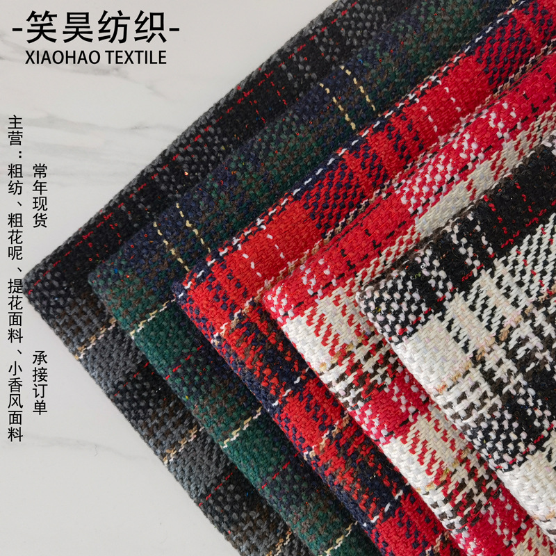 メーカー現物粗紡色織ラシャ毛麦の格子生地秋冬磨毛靴服セット生地