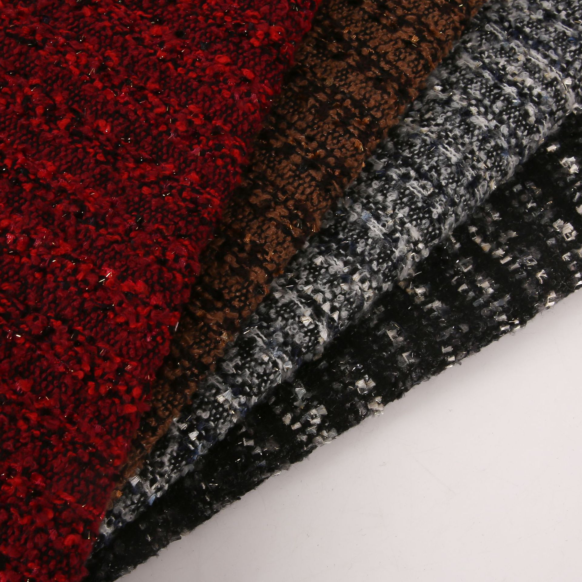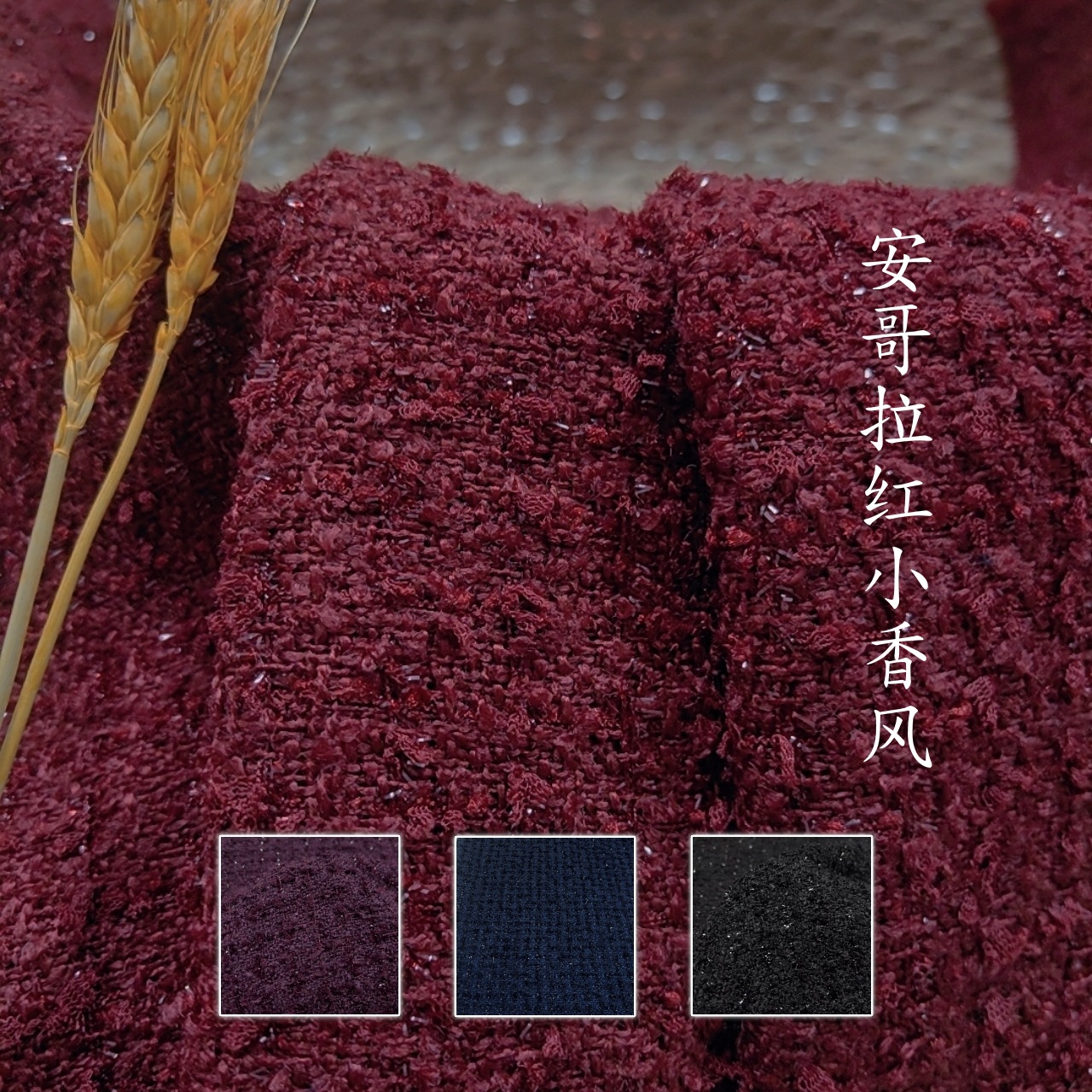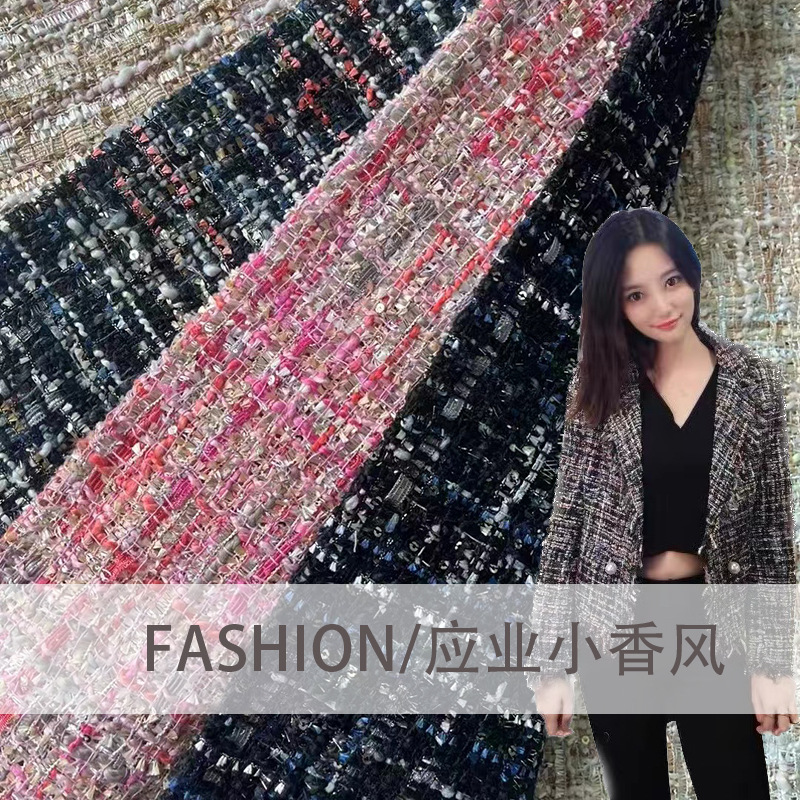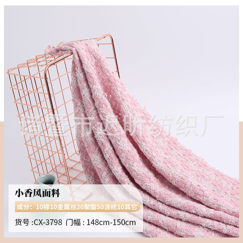 新商品の小香風の布地は日韓のファッション的な布地のバッグの靴の帽子の粗紡の毛です。ピンクの高級なファッション的な布地です。