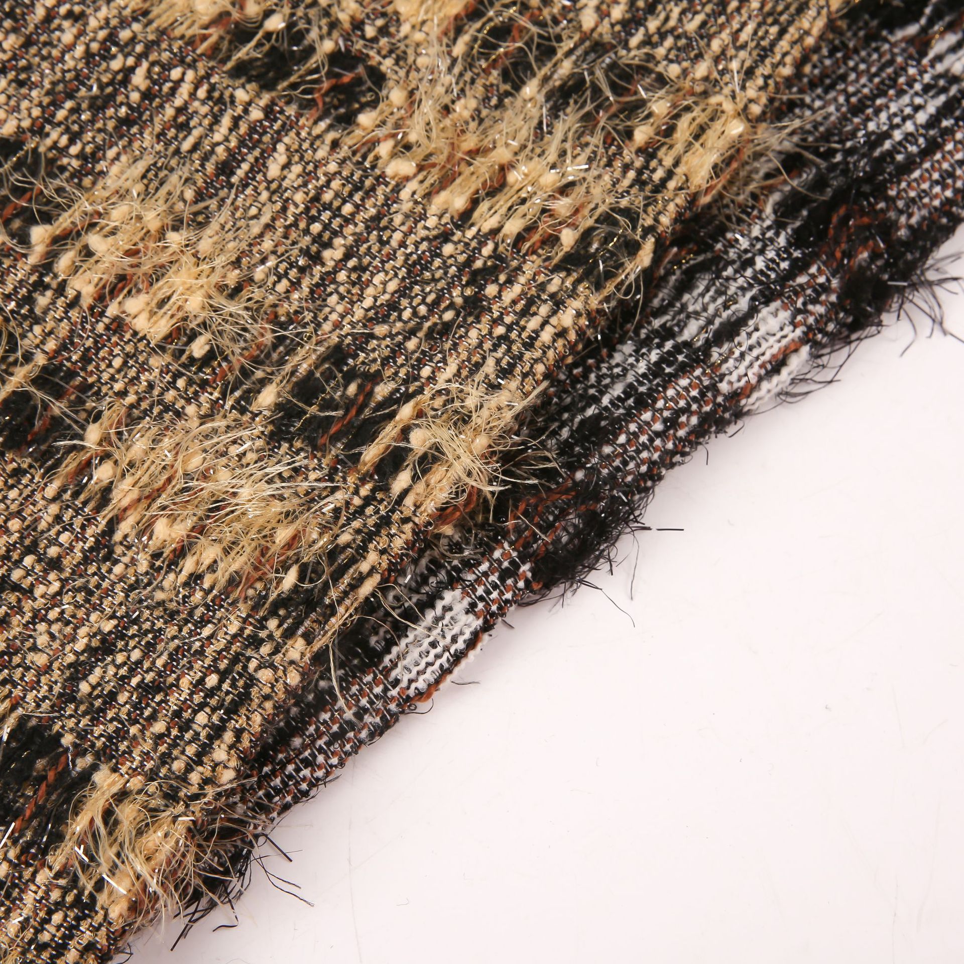 粗紡小香風亮糸白黒格子生地ファッション婦人服コートバッグ生地粗花織り生地