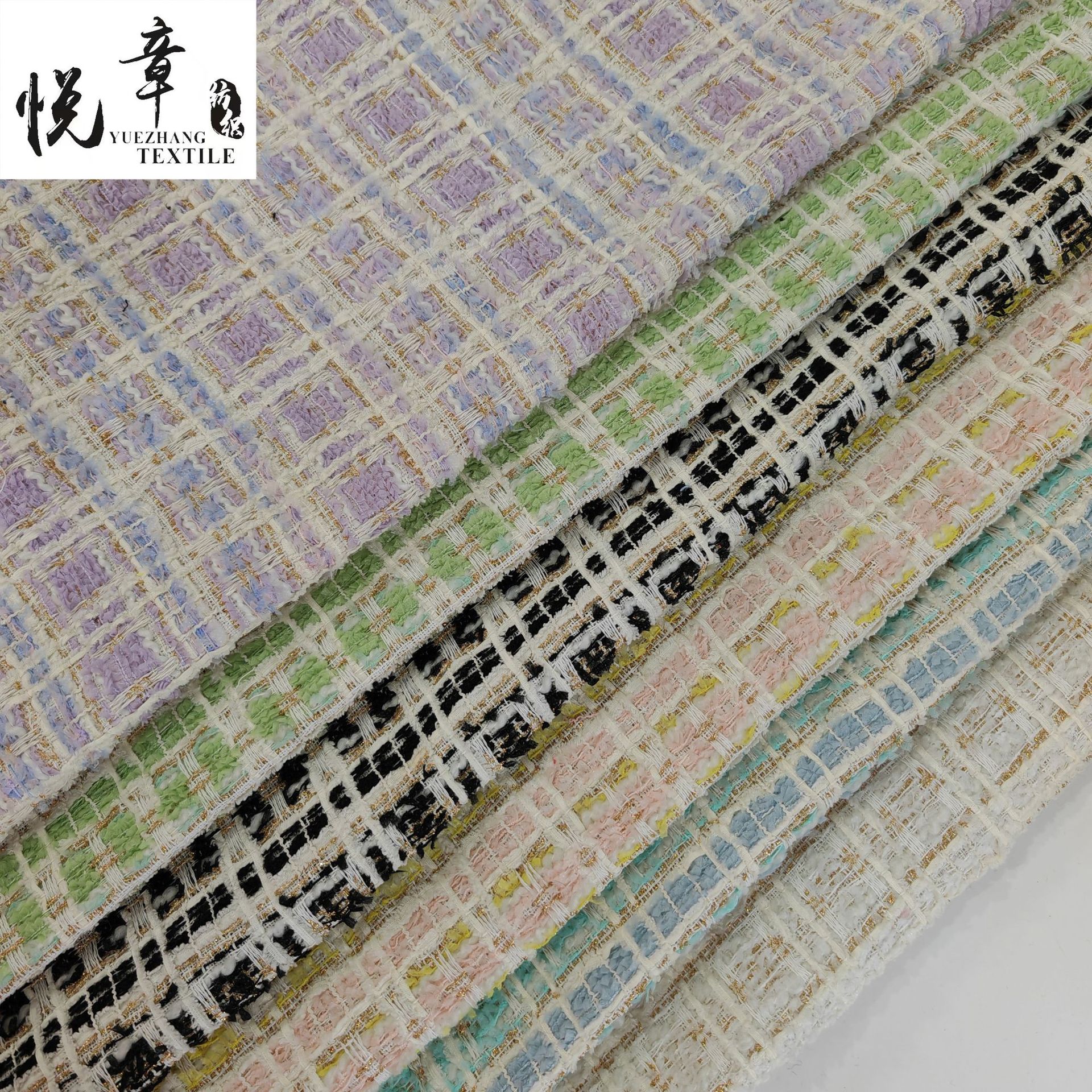 悦章の格子の小さい香風の生地の金糸の粗い紡績は布地の粗い花を編みます。