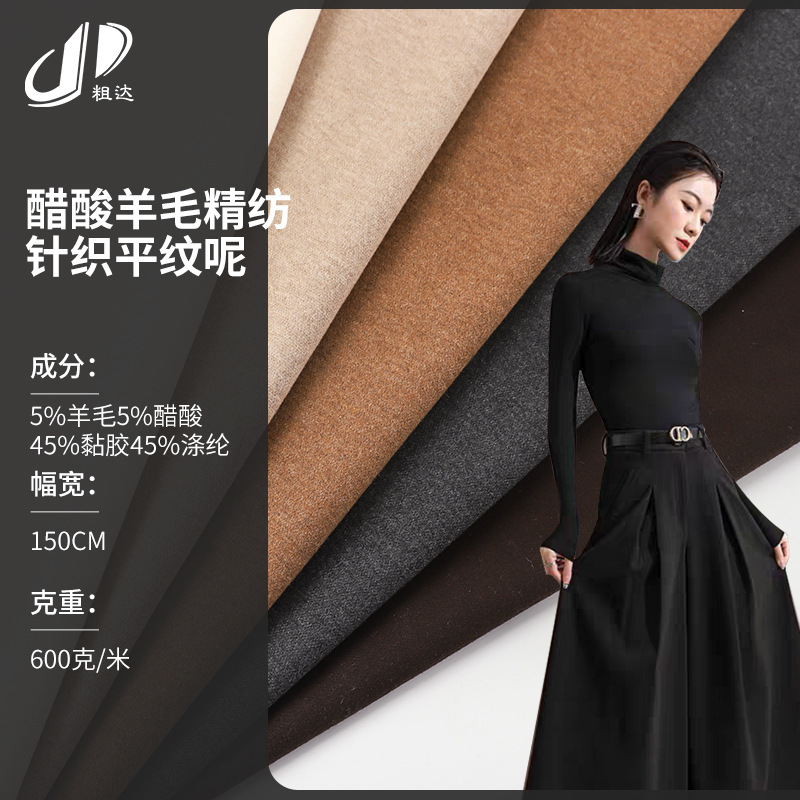 春と秋の新アセテートウール梳毛ニット無地生地スウェットシャツワイドレッグスーツパンツウール生地