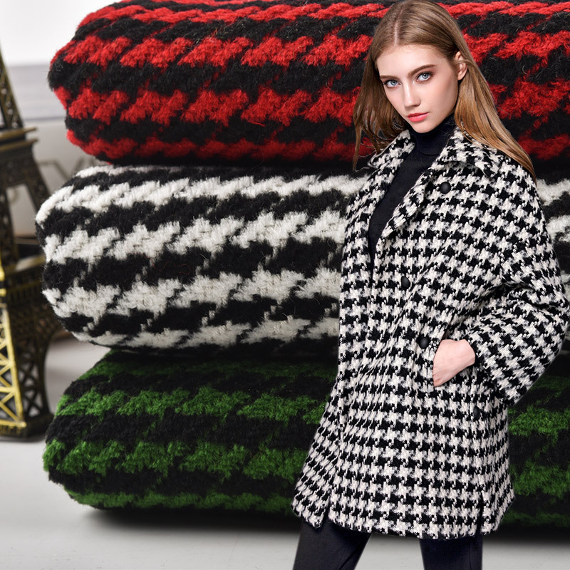 典厚毛紡織60ウール40ナイロン千鳥格生地600g粗花小香風コート生地