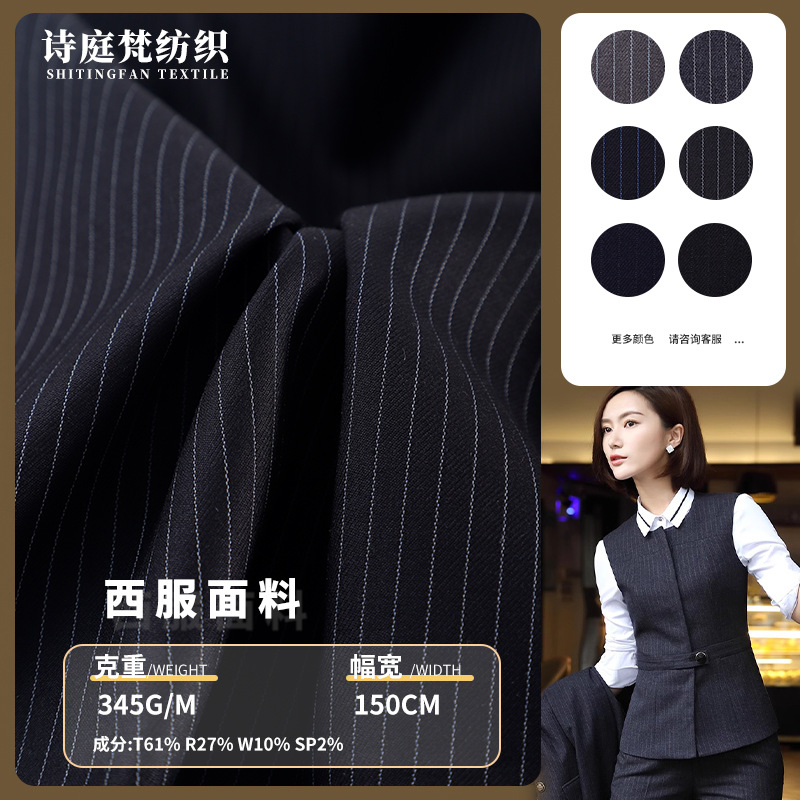 現物345Gの抗シワの細いストライプの _ の精紡のウールのスーツの生地の職業の服装のカジュアルな服の弾力性の布地