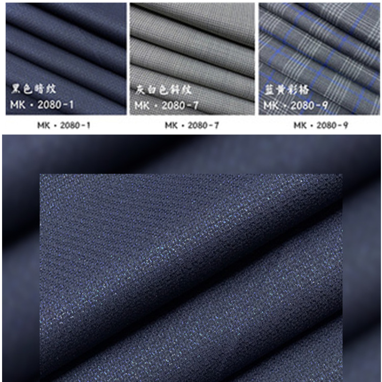 80豪毛精紡弾力格子秋冬ウールスーツ生地セットメンズ女装ファッション混紡美麗奴