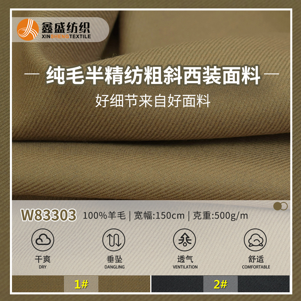 新型460g全ウール舒弾糸精紡ウール生地平織り抗シワ可機洗濯スーツ職業服生地