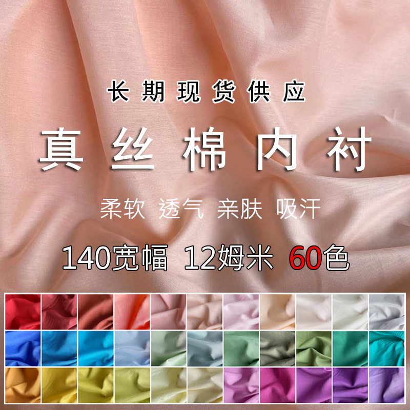 140幅広純色シルク綿生地シルク綿服装ストラップシャツ内張りワンピース绢糸生地