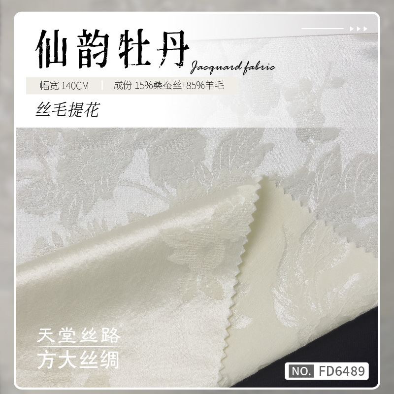 工場直販 シルクウールジャカード妖精のような牡丹柄 48MM140CM2024新作 桑蚕糸ウール FD6489
