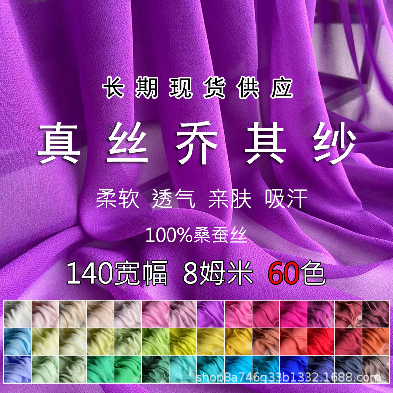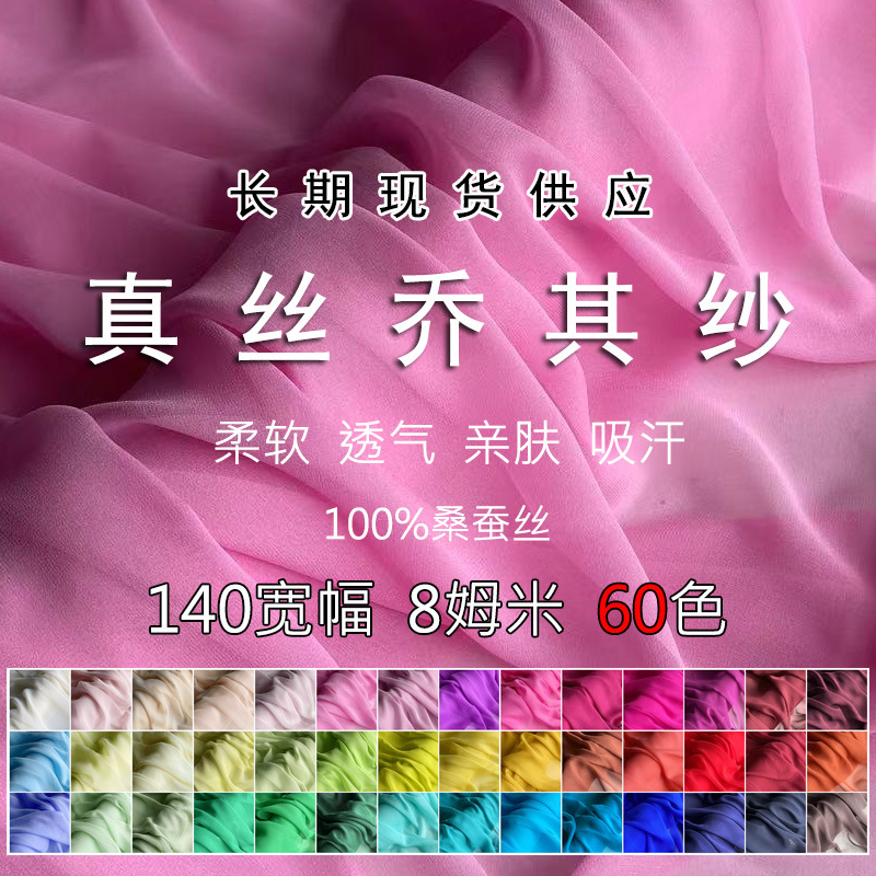 幅広純色シルクシフォン生地生地薄透桑シルクシフォンシルク生地シルクシフォンドレス生地