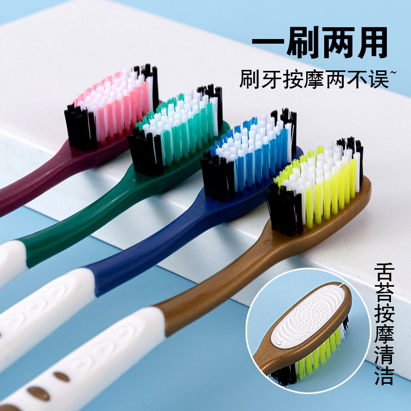 舌苔洗浄機能付き硬毛歯ブラシ、男性、女性、大人、中高年向けの歯の汚れを除去する超硬毛歯ブラシ