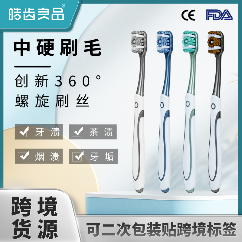 中硬毛歯ブラシ360 ° スパイラル洗浄成人男性家庭用歯汚れ汚れ独立包装